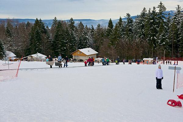 Gut erreichbar und großzügig vorhandene Parkmöglichkeiten machen es leicht, selbst für kurze Auszeiten von ein, zwei Stunden die Skier anzuschnallen oder Schlitten zu fahren. Alles ist möglich. Förderbänder, Lern- und Übungslifte in unterschiedlichen Längen, bieten genügend Platz für Skifahrer und Snowboarder, Schlittenfahrer und Airboarder. Einfach zauberhaft! Daher wohl haben diese Förderbänder auch ihren Namen „Zauberteppich“.
